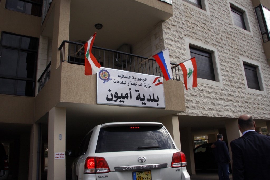 Город Амьюн встречал российскую делегацию с особым радушием - музыкой, российскими флагами, радостными улыбками, на улицах было много взрослых и детей с транспарантами и флагами. Во встречах в Амьюне участвовали Чрезвычайный и Полномочный Посол Российской Федерации в Ливанской Республике А.С.Засыпкин и советник Посольства России С.А. Воробьев. Оба дипломата являются членами ИППО. Состоялись встречи в муниципалитете города, где делегацию встречал мэр города Г.Карама. Состоялся обмен мнениями и фотографирование.