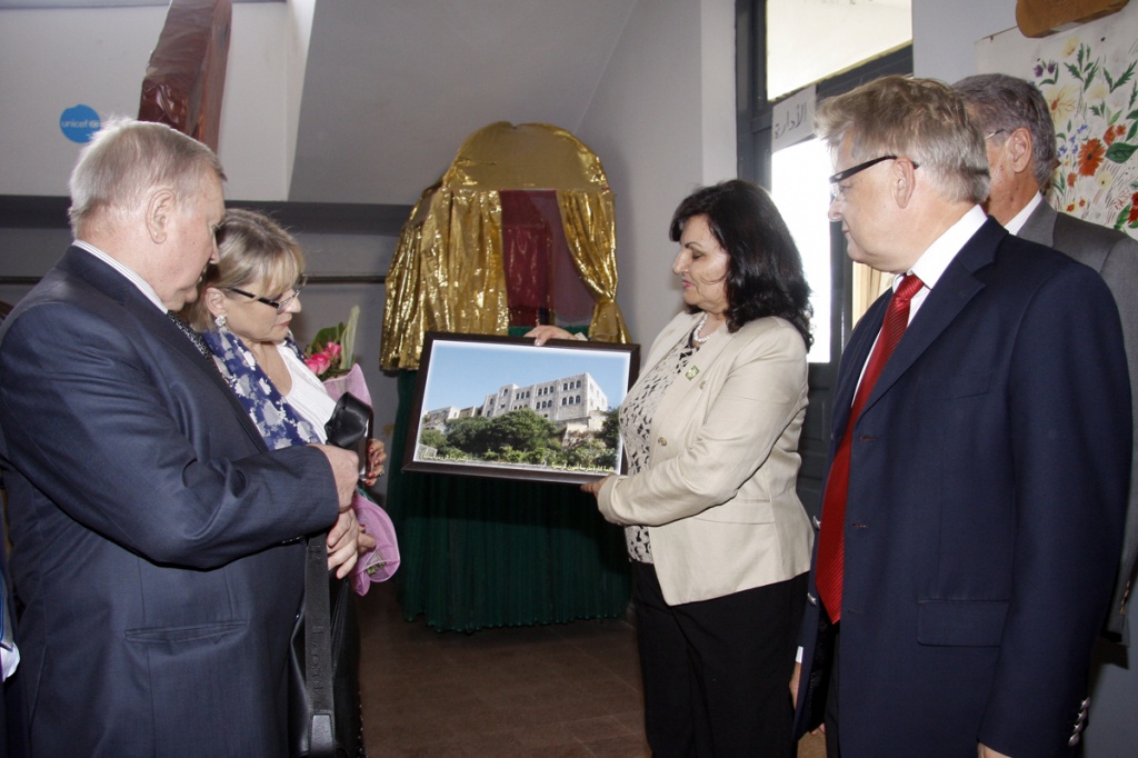 Одним из наиболее эмоциональных моментов стало посещение делегации средней школы, в здании которой когда-то находилась т.н. «московская школа», и встречи с ее директором Иоллой Митри. При встрече она с радостью пожимала руки членам российской делегации и буквально со слезами на глазах, эмоционально приветствовала московских гостей. Мы хотим, сказала директор школы, чтобы русские снова возвратились на ливанскую землю, чтобы русский язык снова зазвучал в этих стенах. Директор школы поведала, что многие известные амьюнцы, их ближайшие и дальние родственники и предки являются воспитанниками этой школы. Это очень образованные и достойные люди, сказал она. Директор показала классы и стенды с детскими рисунками, поделками– все, как в обычной московской школе. С ответным словом выступил Руководитель Международной секции ИППО, член Совета Общества Олег Фомин, который поблагодарил директора школы и собравшихся учеников и родителей за добрую память об основателях «московской школы» и за любовь к народу России.