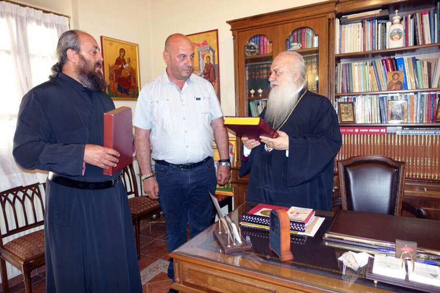 От имени Председателя ИППО Самвел Казарян поприветствовал председателя Греческого отделения Симоса Панагиотиса, пожелал ему и его коллегам успехов в осуществлении благородных целей ИППО на греческой земле. Он вручил ему в дар Евангелие.