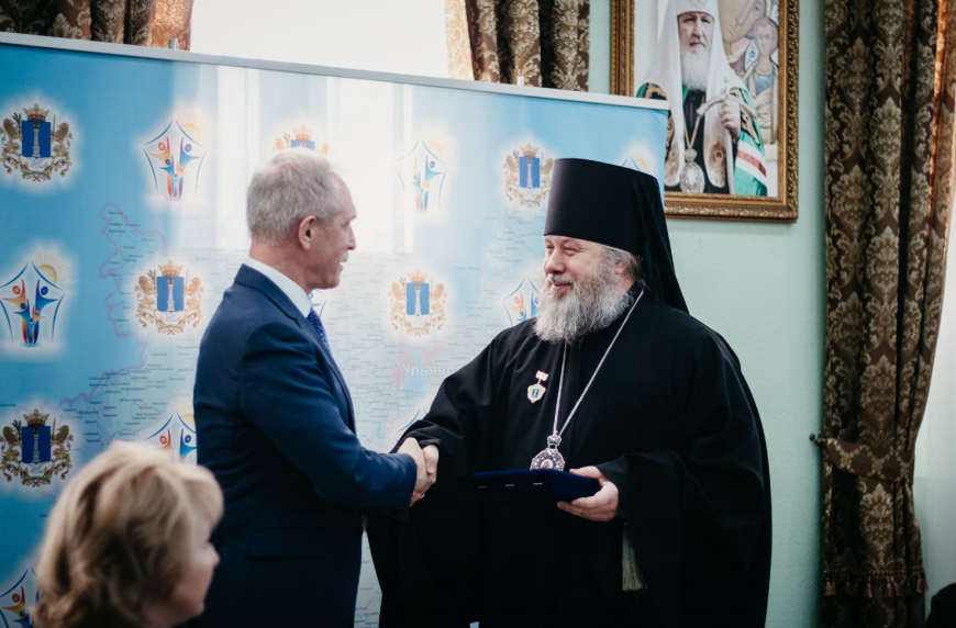 Губернатор вручил почётный знак Ульяновской области «За веру и добродетель» члену Симбирского регионального отделения ИППО епископу Барышскому и Инзенскому Филарету.