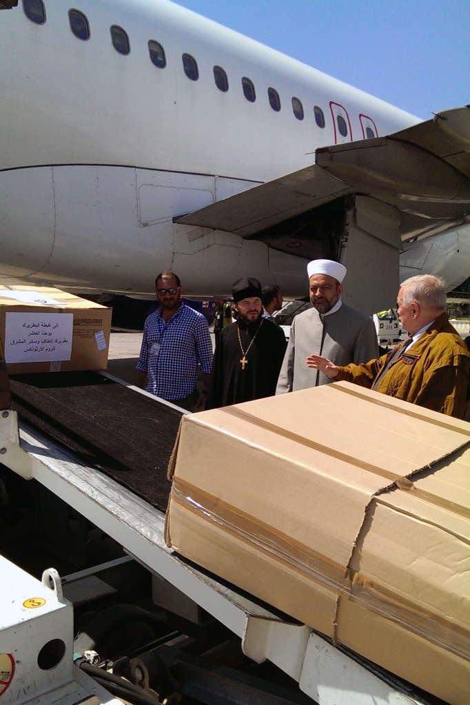 Закупленные инвалидные коляски передаются раненым и пострадавшим в ходе драматических событий христианам и мусульманам через представителей Патриарха Антиохийского и всего Востока Иоанна X и Верховного муфтия Сирийской Арабской Республики Ахмеда Бадреддина аль-Хассуна.