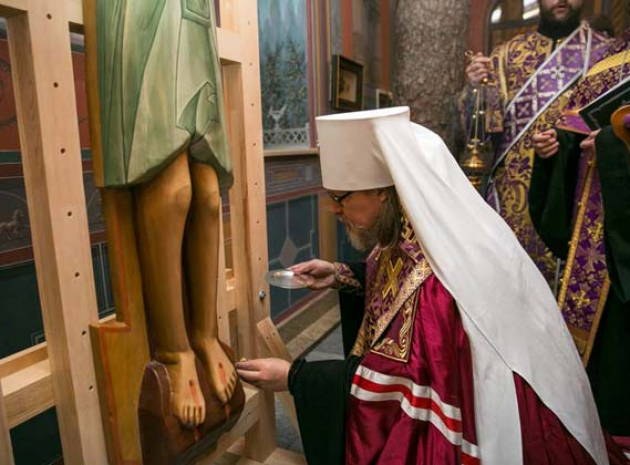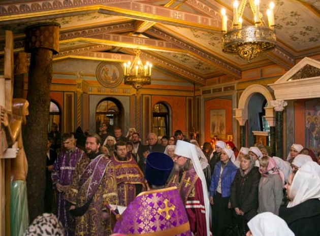 Молебное пение с чтением акафиста Страстям Христовым и чтением Евангелия совершил настоятель храма, заместитель Председателя ИППО митрополит Рязанский и Михайловский Марк.