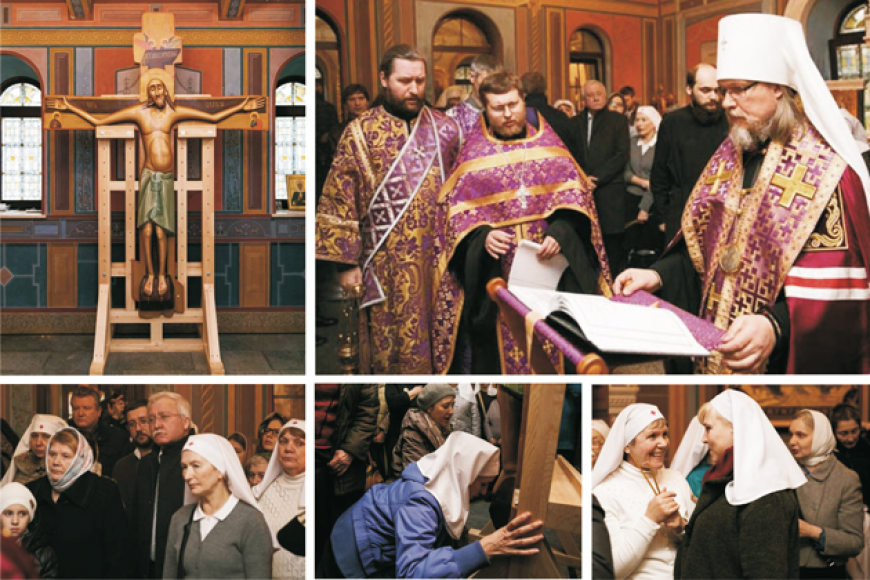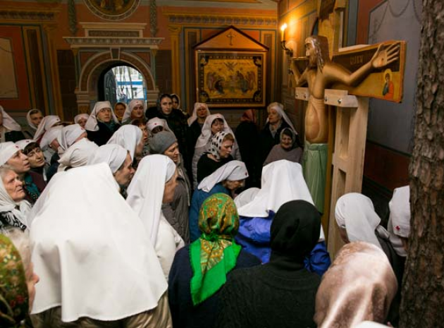 После молебна к святыне – «Кресту в Кресте» – с благоговением приложились прихожане храма, а также сёстры Свято-Пантелеимоновского сестричества, молившиеся за богослужением.