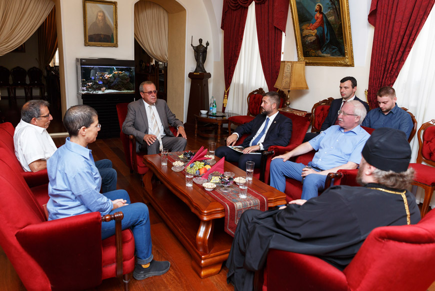 После церемонии открытия, начавшейся в резиденции Русской Духовной миссии, состоялся приём на Сергиевском подворье в Иерусалиме – традиционном месте проведения всех торжественных и культурных мероприятий, связанных с Россией.