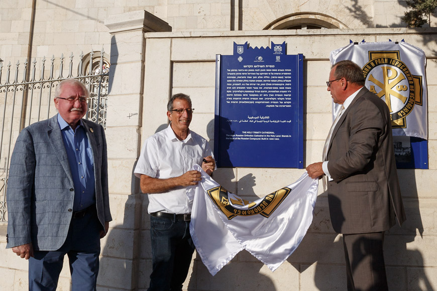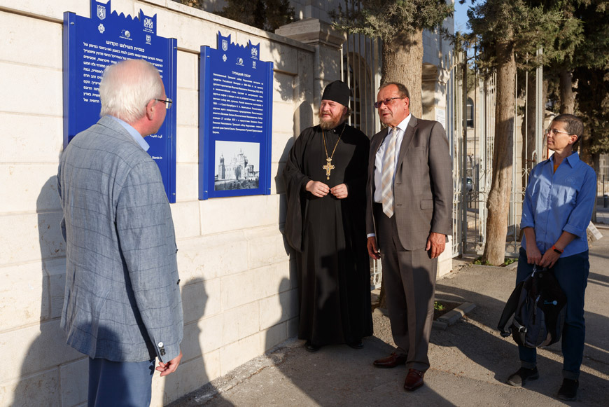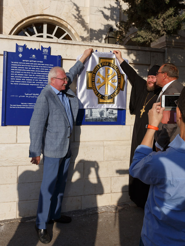 Памятные таблички с надписями на русском, английском и иврите появились сразу на трёх объектах, расположенных недалеко от Старого города: на центральном здании Русской Духовной миссии, Русской больнице и знаменитом Троицком соборе. По словам Председателя Совета ИППО в Государстве ИзраильИгоря Ашурбейли, появление табличек на этих памятниках истории и культуры в центре Иерусалима означает публичное признание их принадлежности к русскому наследию со стороны израильских властей.