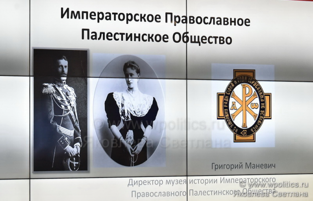 Палестинское Общество было создано в 1882 году Указом императора Александра III. Первым председателем Общества был Великий князь Сергей Александрович, идеологом – Василий Николаевич Хитрово, который долго пытался доказать императору и российской политической элите необходимость выдвижения нашей страны на Святую Землю, но, как ни странно, достучаться не мог. Многие в России тогда, да и потом, считали: это не наше, это далеко, и нечего нам там делать. И когда случилась беда в семье Романовых, связанная с убийством царя Александра II в 1881 году, Сергей Александрович поехал на Святую Землю как простой паломник и находился там больше трёх месяцев, молился, проникся святостью. После возвращения домой они вместе с Хитрово пошли к императору Александру III, и таким образом состоялся Указ о создании нашего Общества.