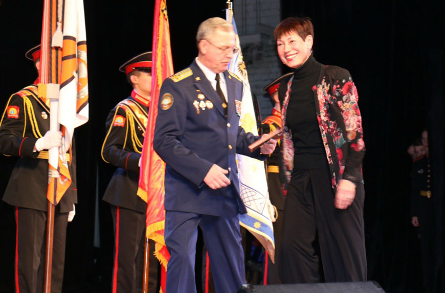 От имени Председателя Императорского Православного Палестинского Общества Степашина С.В. коллектив училища тепло приветствовала председатель регионального отделения ИППО Гудень Н.С. Суворовцев поздравила и творческая группа «Симбирянка», в составе которой действительные члены нашего Общества.