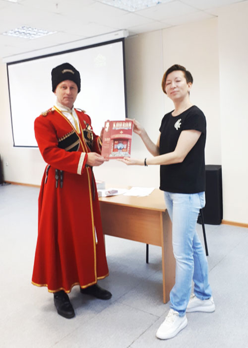 Перед аудиторией выступили атаман Иркутского казачьего войска Союза казаков России Александр Леонтьев и действительный член ИППО, старший урядник Иркутского отдела Санкт-Петербургской общественной организации «Возрождение духовного и культурного наследия казачества «Конвой святого царя страстотерпца Николая II» Вадим Фисенко.