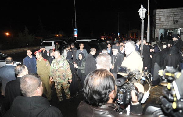 Вместе с митрополитом Антиохийской православной церкви Лукой (Хури) их встречали в ночные часы толпы людей, в том числе представители мусульманского духовенства.