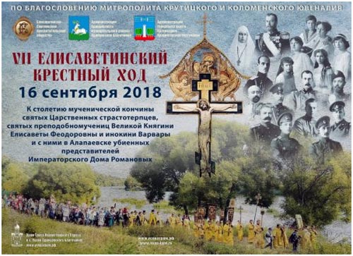 В этом году по благословению митрополита Крутицкого и Коломенского Ювеналия Елисаветинский крестный ход состоится в седьмой раз и будет посвящён 100-летию мученической кончины Царской семьи и Великой княгини Елизаветы Фёдоровны.