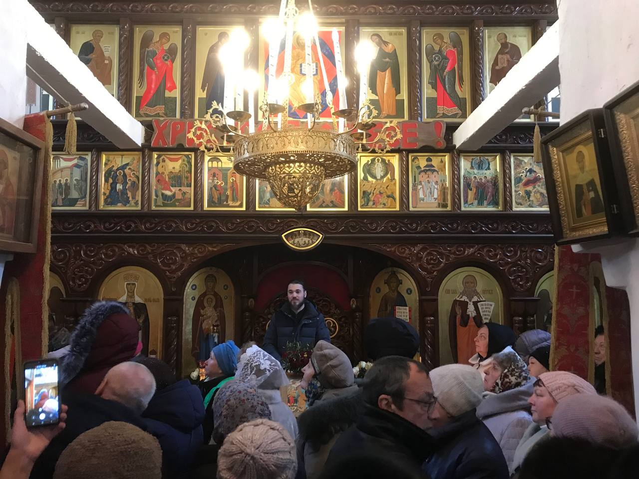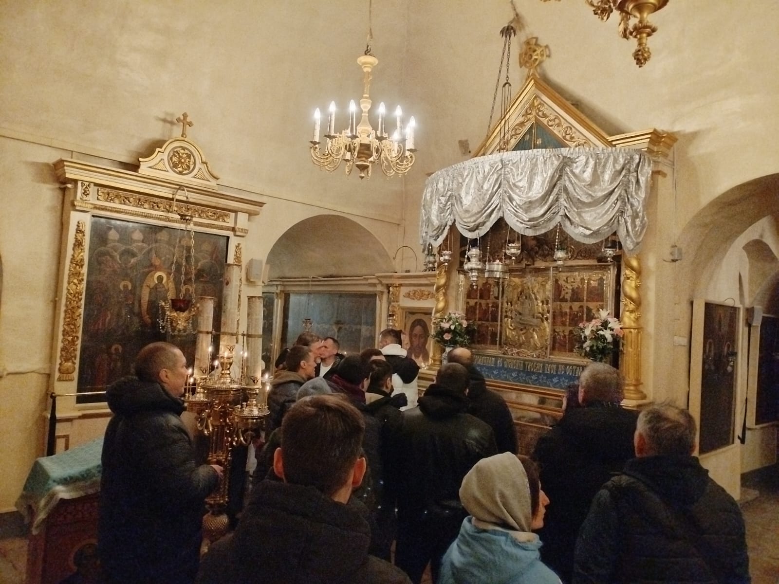 Перед чудотворной иконой Успения Пресвятой Богородицы (Успенский пещерный храм, Печоры)