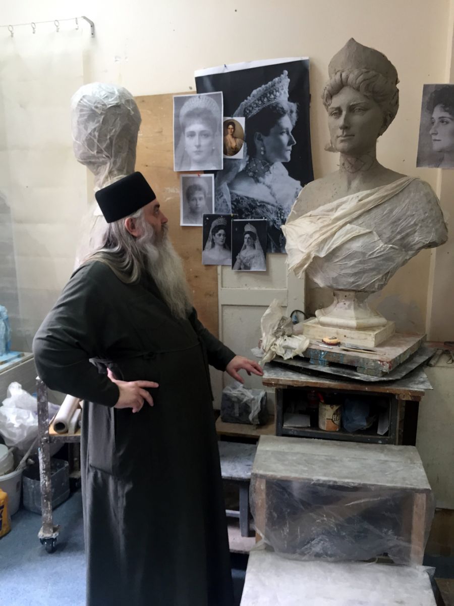 Заместитель председателя Нижегородского отделения ИППО игумен Вознесенского Печерского монастыря архимандрит Тихон (Затёкин) побывал в мастерской скульптора и внёс свои замечания.