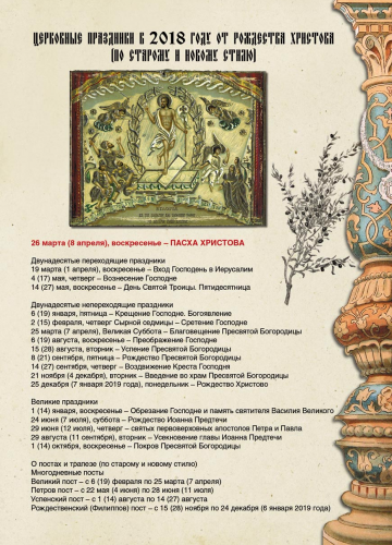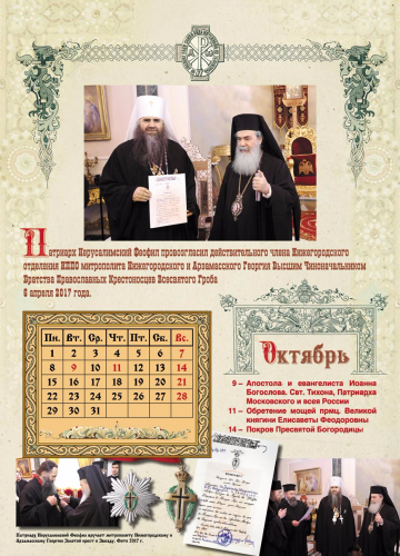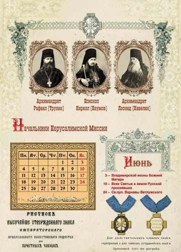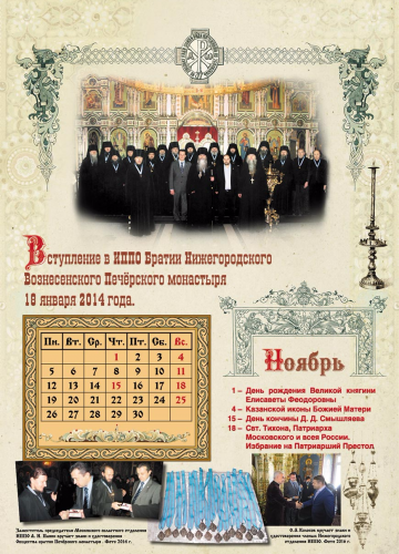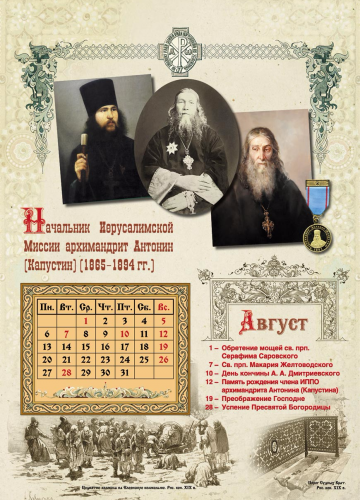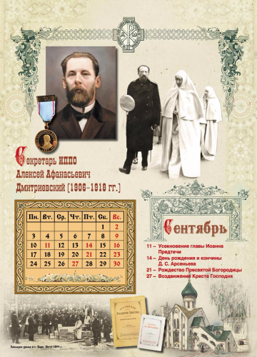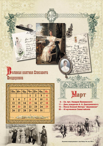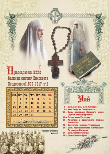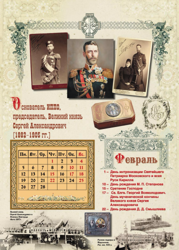 В календаре, помимо церковных праздников, указаны дни памяти основателей ИППО – Его Императорского Высочества Великого князя Сергия Александровича, Её Императорского Высочества Великой княгини Елизаветы Фёдоровны, архимандрита Антонина (Капустина), В. Н. Хитрово, А. А. Дмитриевского и других.