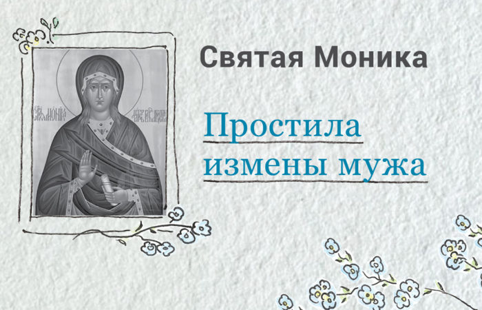 Муж святой Моники, Патриций, воспитанный в традициях языческой морали, не считал нужным быть верным своей супруге. Он даже не стеснялся делиться с ней впечатлениями после очередной измены. Но жена молчала, каждый раз прощая своего супруга. Более того: святая сумела устроить семейные отношения так, что в доме всегда были мир и уют. И вспыльчивый муж ни разу за всю их совместную жизнь не посмел поднять на неё руку.