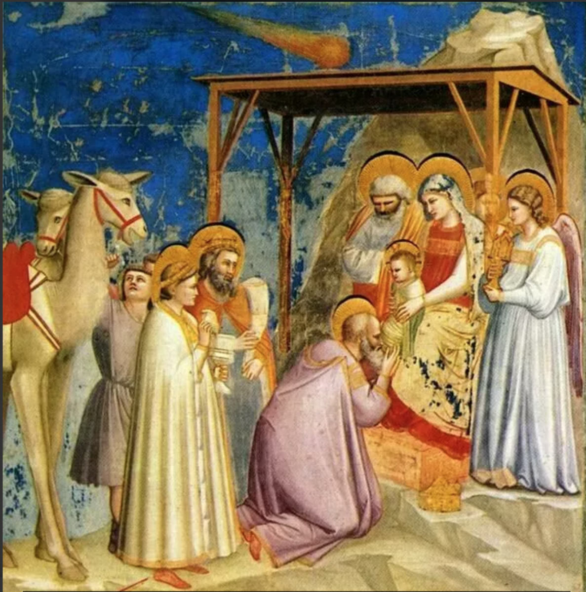 В небольшой капелле в итальянской Падуе хранится одно из величайших сокровищ средневекового искусства. В начале XIV века предтеча мастеров Ренессанса Джотто расписал своды церкви сценами из жизни Христа. И одна фреска посвящена поклонению волхвов. С точки зрения иконографии — ничего особенного: младенец Иисус на коленях Девы Марии, рядом Иосиф и два ангела, напротив — волхвы с дарами. Все вроде бы так, как описано в Евангелии.