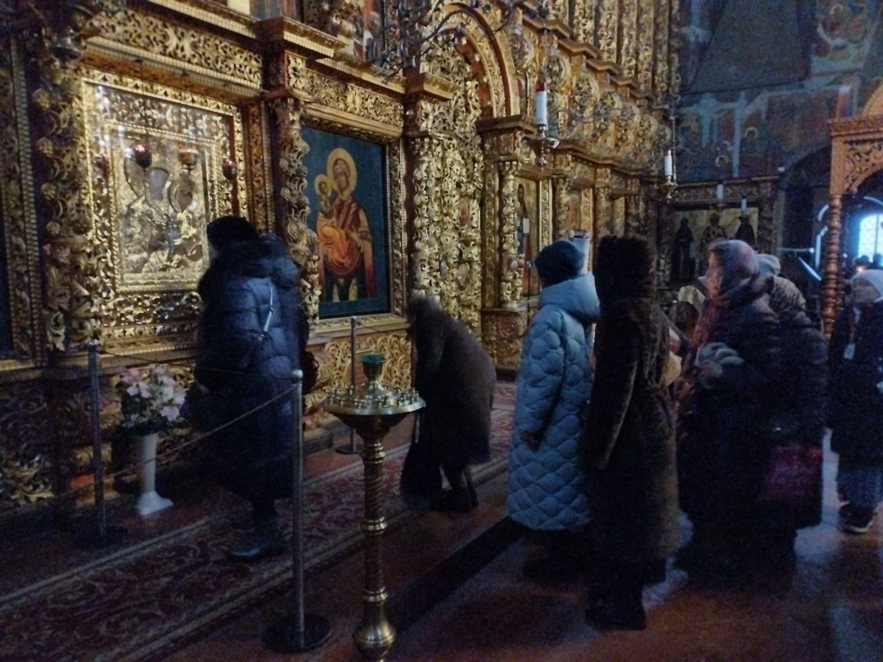За утреней всенощного бдения паломники молились в недавно воссозданном Богоявленском кафедральном соборе, под сводами которого находится теперь главная святыня Костромского края – икона Божией Матери «Феодоровская». Кроме того, посещающие главный епархиальный храм имеют возможность поклониться Кресту, в котором содержатся частицы мощей 278-и угодников Божиих.