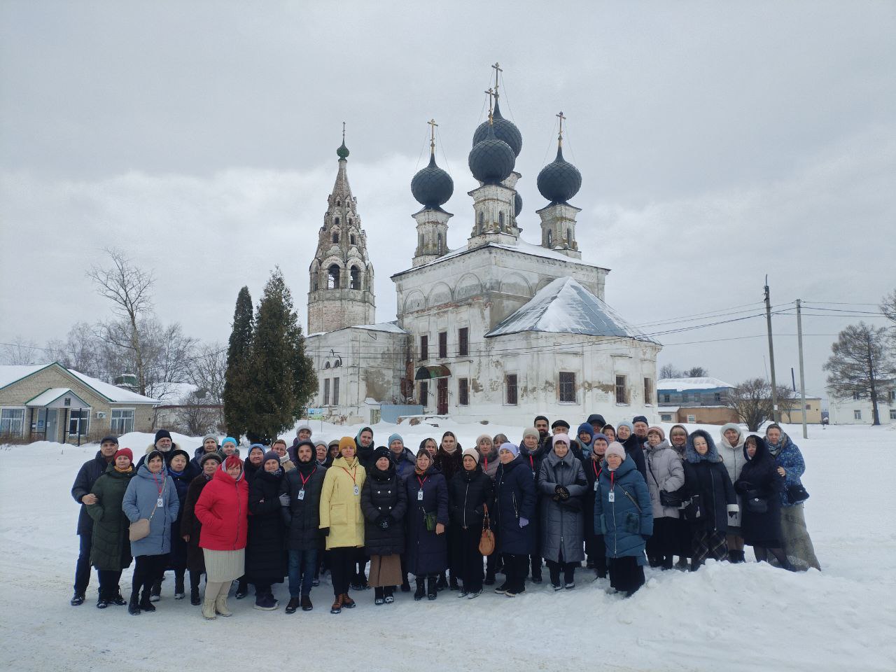 Позавтракав в епархиальной гостинице и наскоро посетив храм Воскресения Христова на Дебре, паломники поехали в поселок городского типа Сусанино, главной достопримечательностью которого является Воскресенская церковь, запечатленная на картине А.К. Саврасова «Грачи прилетели».