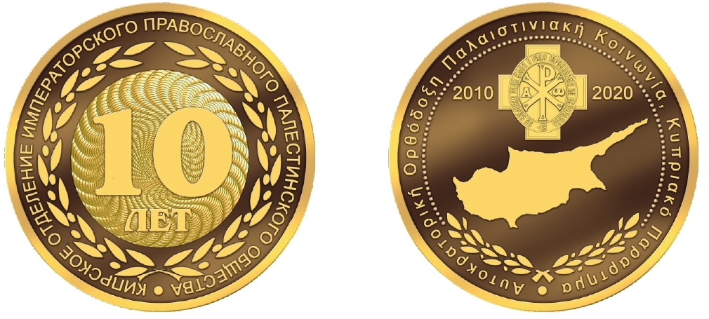 Памятная медаль «10 лет Кипрскому отделению Императорского Православного Палестинского Общества» выпущена небольшим тиражом, вручена Председателю ИППО Сергею Степашину и передана в музей Императорского Православного Палестинского Общества.