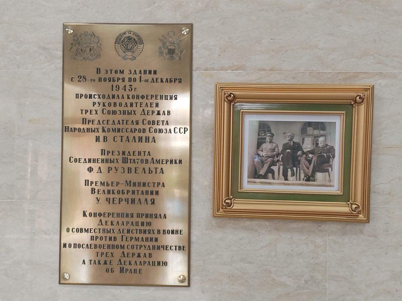 На территории Посольства Российской Федерации примечательны два места – зал, где проходила в 1943 году Тегеранская конференция, и место убийства религиозными фанатиками Посла Российской империи в Персии поэта А.С. Грибоедова.