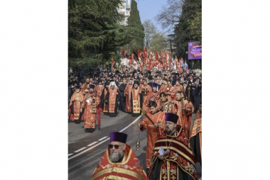 Шествие возглавил Святейший Патриарх Кирилл и сонм архиереев Православных Церквей.