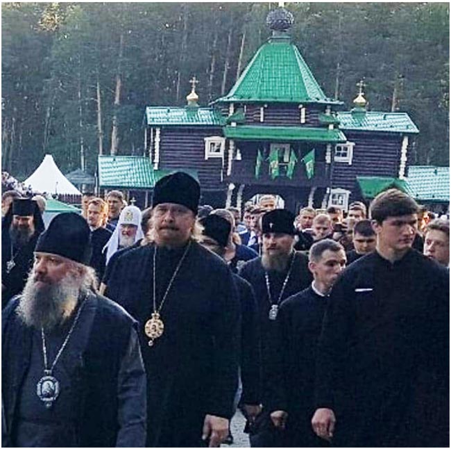 Около 07:00 часов утра колонна крестного хода во главе с духовенством достигла монастыря во имя святых Царственных страстотерпцев на Ганиной яме. Паломников и духовенство братия монастыря встречала колокольным звоном.