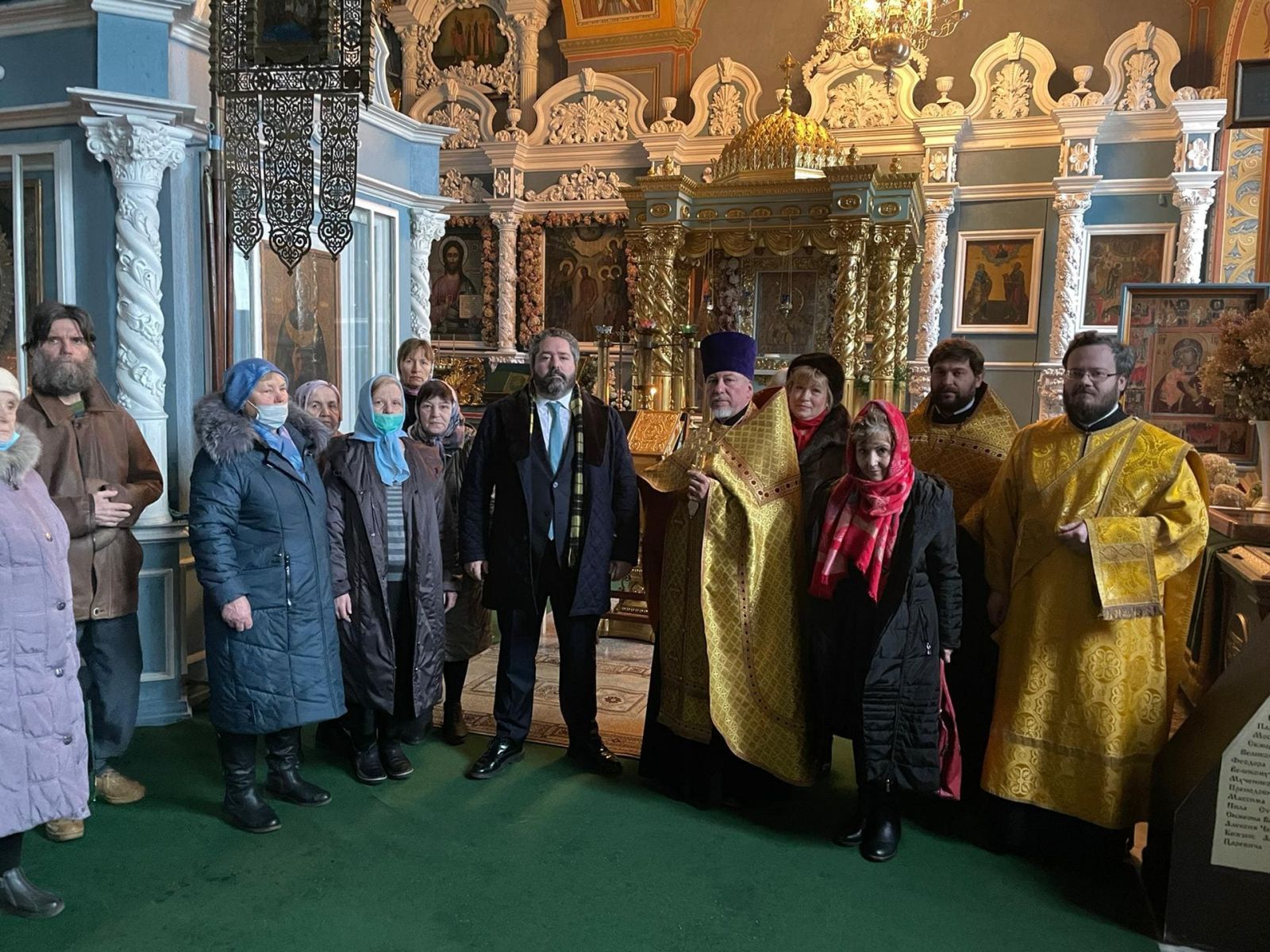 Затем Наследник Цесаревич и Великий Князь Георгий Михайлович проследовал в Богоявленско-Анастасиин кафедральный собор, где у чудотворного образа иконы Божией Матери Феодоровской был совершен благодарственный молебен о чудесном спасении Наследника 14 ноября 2019 года.