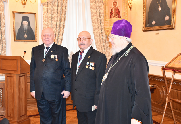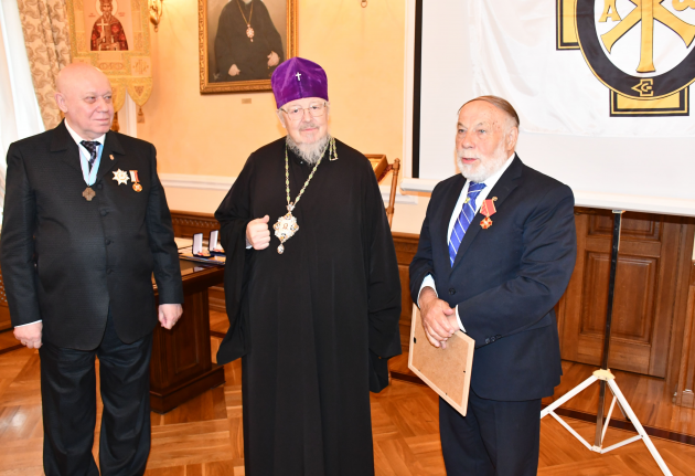 После выступления Сергей Гонюхов и Митрополит Красноярский и Ачинский Пантелеймон вручили высокие награды Общества ряду членов ИППО. Так, Почетным знаком памяти архимандрита Антонина (Капустина) был награжден Александр Нашивочников, а Почетного знака памяти Николая Николаевича Лисового был удостоен Николай Горковенко. Были вручены награды и от других общественных организаций, с которыми тесно сотрудничает Общество.