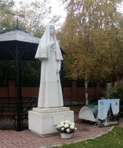 Круглый стол завершил свою работу возложением цветов к памятнику Великой княгине Елизавете Федоровне Романовой, который установлен во дворе Архиерейского дома. И далее участники круглого стола сделали памятное фото у памятника.