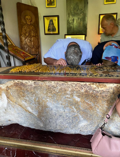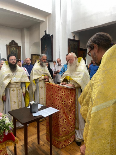 Игумен Игнатий поблагодарил Председателя ИППО Сергея Степашина и Президента Благотворительного Фонда святого мученика Вонифатия, действительного члена ИППО Наталью Мезенцеву за большой вклад по укреплению Православия в мире и помощь его храму. Он передал подарки для Музея истории ИППО в Москве, а также предложения, касающиеся работы Общества в Абхазии. После молебна все желающие смогли приложиться к иконе.
