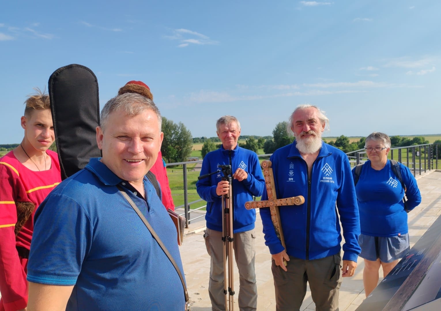 Валерию Шанину на несколько дней придется покинуть команду. Вышла из строя большая видеокамера, и её срочно нужно чинить. Но вернемся к концерту автора-исполнителя Юрия Белоусова, который на одном дыхании, прошел в актовом зале Музея-Заповедника «Куликово поле», любезно предоставленного администрацией по письму председателя правления Союза писателей России Николая Федоровича Иванова. Вдохновившись героическими песнями, Сергей Забурниягин предложил мне еще раз пройти путь от села Мохового к селу Монастырщина прямо сейчас, пока не зашло солнце. Три с половиной километра до Поклонного Креста у Зелёной дубравы, где вступил в решающий бой Засадный полк русичей, принеся победу войску Великого Князя Дмитрия Донского, мы шли вдвоём с Забурниягиным, моим другом, коллегой по ИППО и Всероссийскому движению «Русская мечта», а потом, оставшиеся 6 км до Храма Рождества Пресвятой Богородицы я нес святыню один, читая молитвы и веря в победу Русского духа. В такие моменты хочется жить долго и творить больше. В 4.00 утра на следующий день, нам с Сергеем Забурниягиным предстояло преодолеть еще 20 километров до легендарного Никольского Храма в город Епифань, известной, как древняя крепость Засечной черты. По легенде, Епифанский Собор назван в честь Николая Чудотворца после событий, связанных с Куликовской битвой. Литовские войска шли на помощь Мамаю. Подойдя к Епифани, лошади заупрямились и не могли сдвинуться с места, пока в одной из повозок воины не обнаружили икону. Святой образ ослепил недругов, и те в страхе направились домой, а воз с иконой остался. После ее обнаружили русские воины - это и стало божественным знаком для постройки церкви.