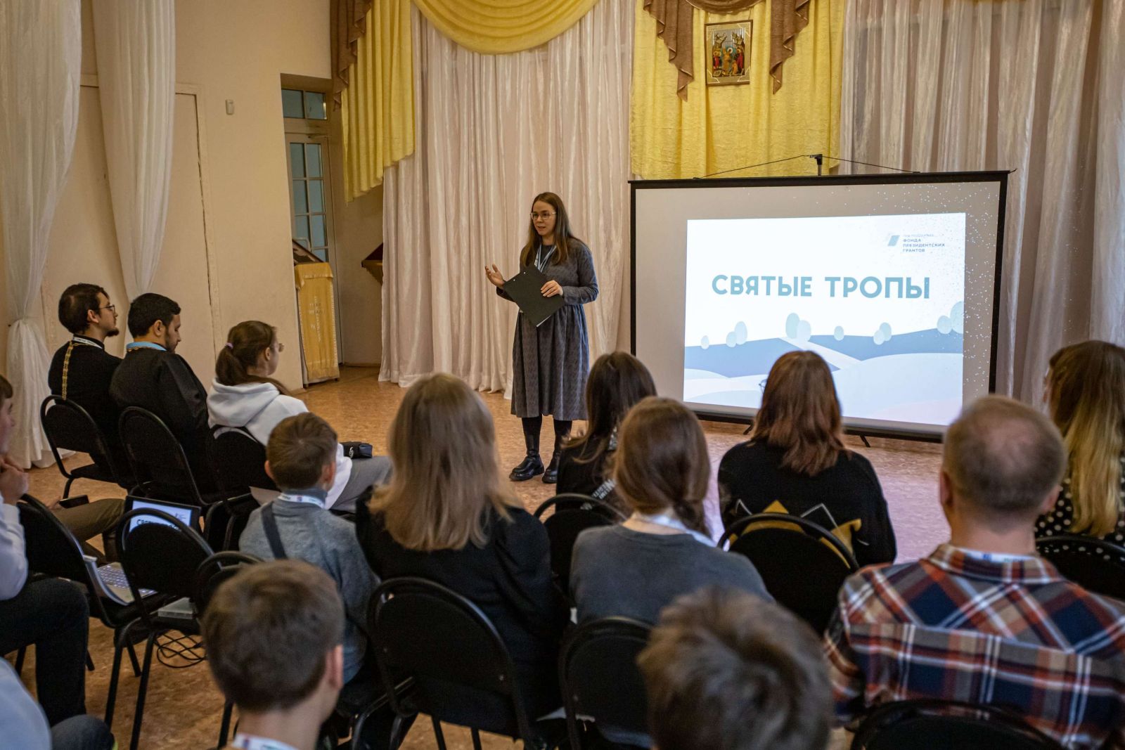 Отец Геннадий рассказал об истории Общества и его современной деятельности. Также с приветственным словом и благословением Владыки Митрофана, епископа Гатчинского и Лужского, к участникам обратился священник Алексей Ковальчук, председатель молодёжного отдела Гатчинской епархии. Руководитель Молодежной секции регионального отделения ИППО Анна Сологубова рассказала о проекте «Святые тропы», о его целях и задачах, а также о дальнейшем развитии.