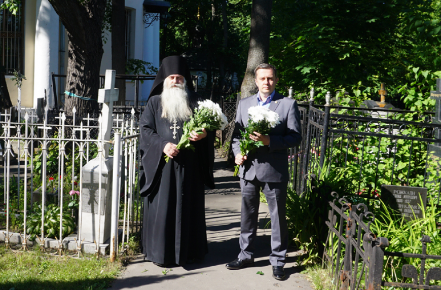 Архимандрит Тихон и Александр Николаевич Панин на протяжении многих лет активно трудятся в рамках совместной программы «Возвращение памяти» на территории Ваганьковского некрополя.