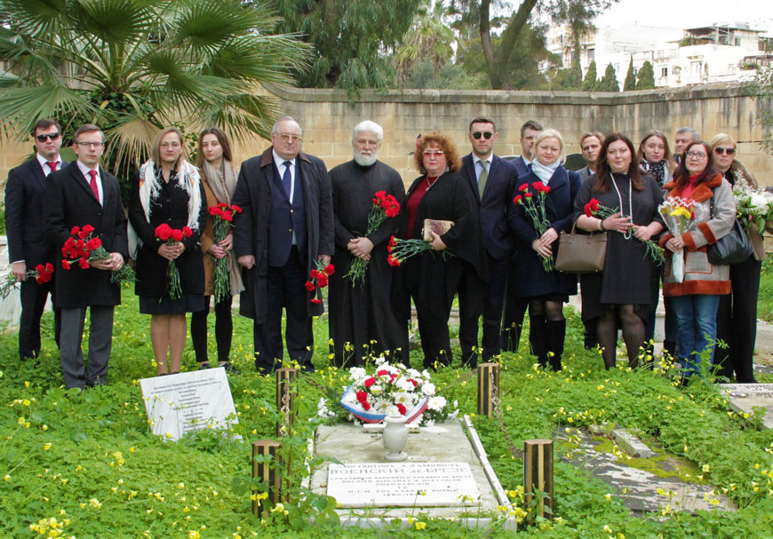 В мемориальной церемонии, состоявшейся 8 февраля, приняли участие руководитель Мальтийского отделения Ирина Маликова, Чрезвычайный и Полномочный Посол Российской Федерации в Республике Мальта Владимир Малыгин, руководитель представительства Россотрудничества на Мальте Андрей Муравьёв, сотрудники Посольства РФ и Российского центра науки и культуры, староста русского православного прихода на Мальте и правления Координационного совета ассамблеи российских соотечественников (КСАРС) Александр Курышев, а также российские соотечественники, проживающие на Мальте.