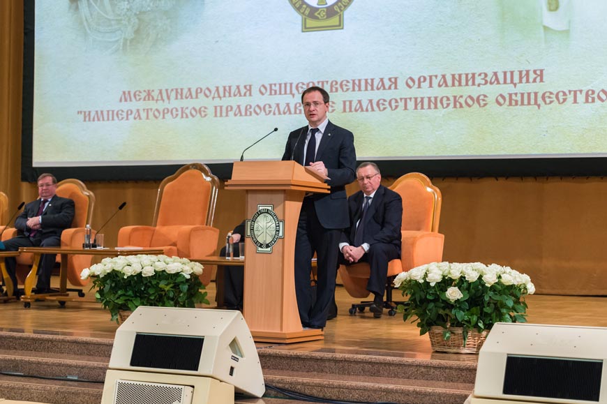 Я желаю нашим товарищам, соратникам по этой работе, нашим друзьям из Императорского Православного Палестинского Общества успехов и процветания во имя нашей Родины.