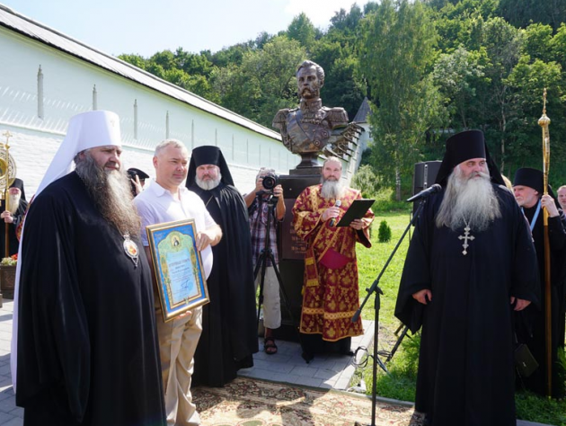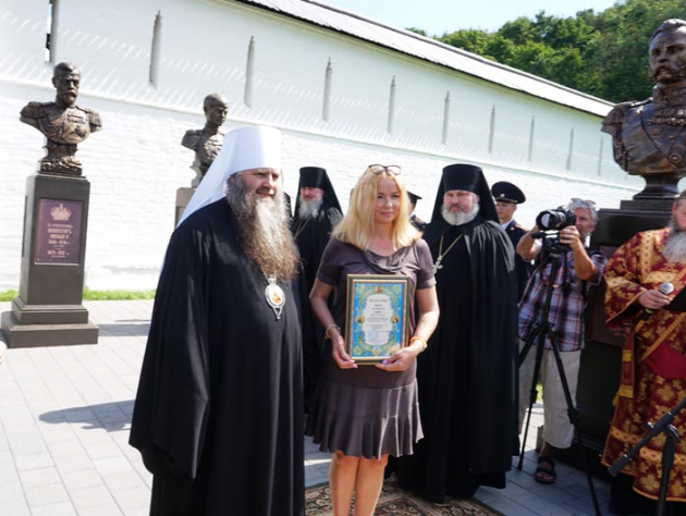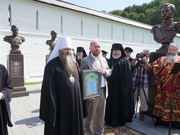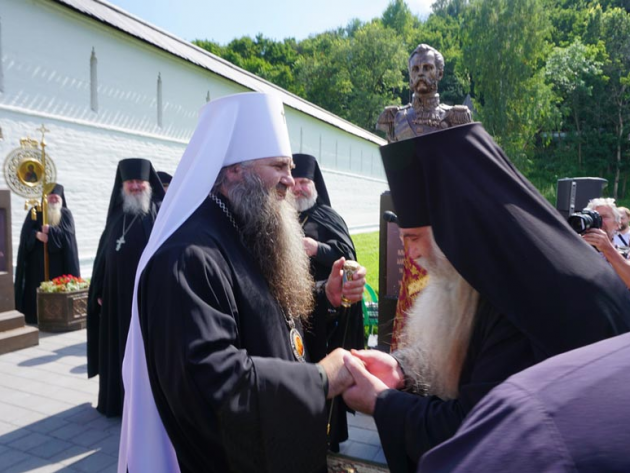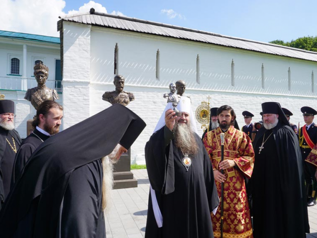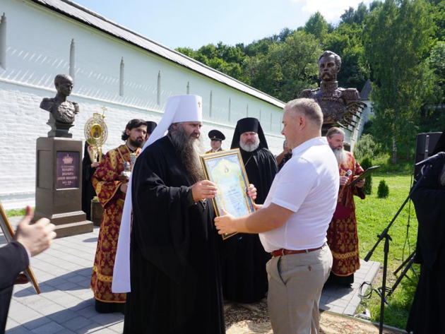 После этого с приветственным словом к владыке Георгию обратился игумен монастыря архимандрит Тихон (Затёкин), поблагодарив Его Высокопреосвященство за участие в созидании Романовской аллеи Славы и вручил ему серебряный бюст царя-страстотерпца Императора Николая Александровича.