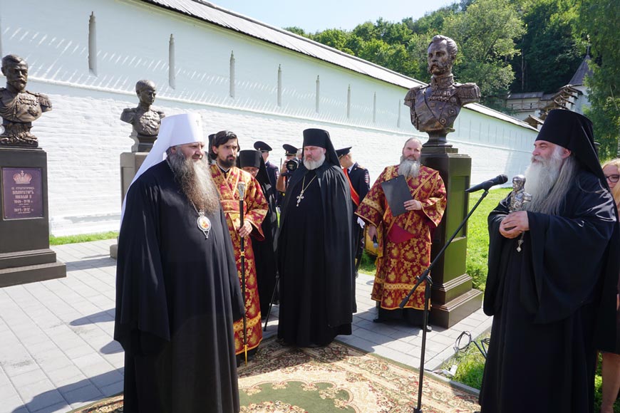 По освящении памятников Его Высокопреосвященство обратился к собравшимся с архипастырским словом, в котором напомнил об особом служения монархов Российской Империи.