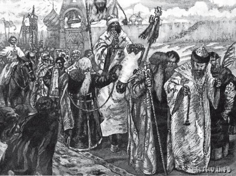 Совершение обряда "Шествие на осляти" в неделю вай (Вербное воскресенье) в царствование Ивана Грозного.