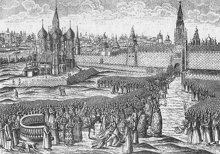 Гравюра по рисунку Николая Витсена из книги Адама Олеария "Описание путешествия в Московию…". Лейден. 1719 г. Государственный исторический музей, Москва.