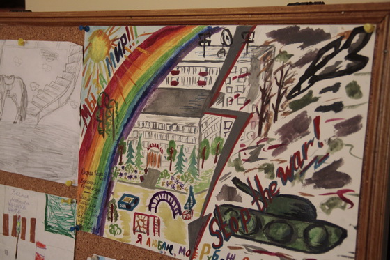 Вместе с представителями Московского отделения Императорского Православного Палестинского Общества к ребятам из Москвы приехали и художники, чьи картины были представлены на аукционе. Они провели для ребят мастер-классы по рисованию, а в фойе центра – была организована выставка детского рисунка. Ее лейтмотив – решительное "нет" войне. Может быть, именно эта общая детская молитва – чистая и искренняя, станет залогом мира, которого нам так не хватает.