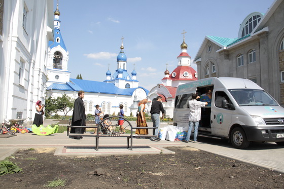 В приюте в Отрадном в Воронежской области сегодня из-за трагических событий на Украине живут более ста женщин и детей из Луганска, Донецка, Славянска, Краматорска, Алчевска. Большинство детей до 12 лет. Еще весной предполагалось, что новое двухэтажное здание на территории храма станет домом для детей-сирот. Однако военные действия внесли свои коррективы в это благое начинание – теперь по благословению митрополита Воронежского и Лискинского Сергия здесь расположился центр размещения беженцев, который существует на средства Воронежской епархии и благотворителей.