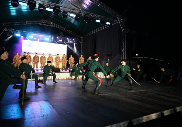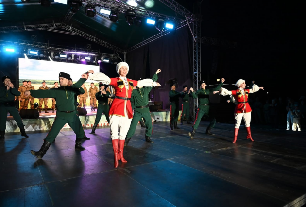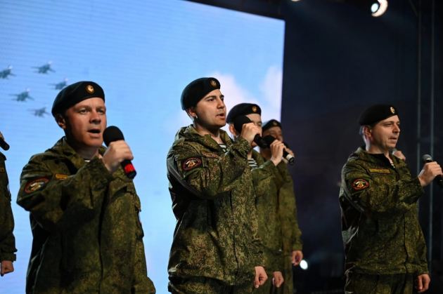 Выступление военнослужащих началось с молитвы «Богородице», на экране при исполнении песни показывали фото, героев, погибших при исполнении воинского долга.