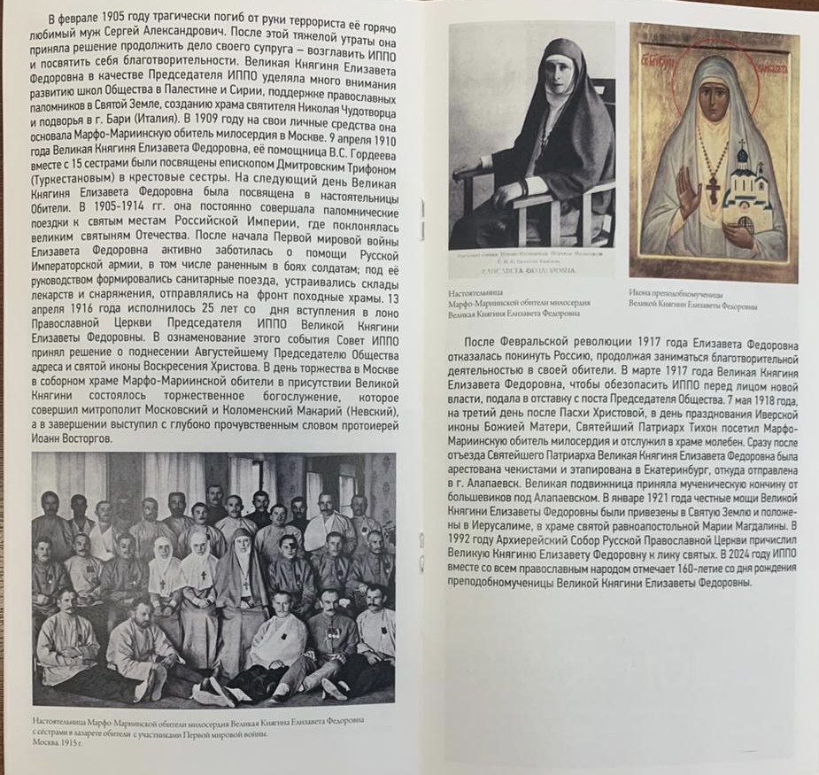 Напомним, в течение всего 2024 года Императорское Православное Палестинское Общество организует ряд памятных мероприятий, посвящённых 160-летию со дня рождения Великой княгини Елизавета Фёдоровны.