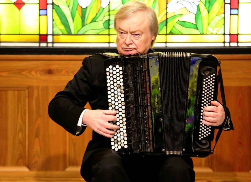 Украшением вечера стало выступление выдающегося российского баяниста и композитора Фридриха Липса, который также является заведующим кафедрой в знаменитой Российской музыкальной академии им. Гнесиных в Москве.