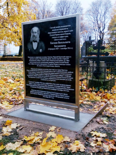К сожалению, могилы Е. В. Богдановича и Р. В. Красовского были разрушены в годы лихолетья. И поэтому решением Попечительского совета благотворительного фонда «Возрождение культурного наследия» памятная гранитная двухсторонняя доска, повествующая об этих достойных сынах России, была установлена рядом с Никольским храмом на видном и доступном для людей месте.