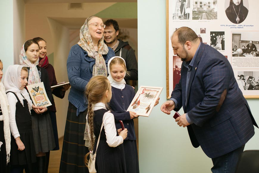 Во время вручения наград детско-юношеский хор во имя святого преподобного Иоанна Дамаскина исполнял для каждого награждаемого песнопение.