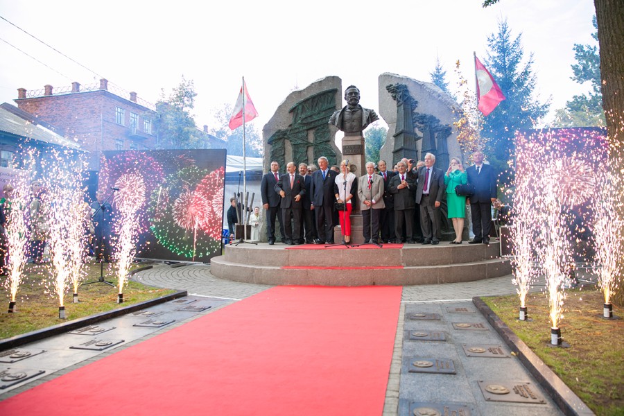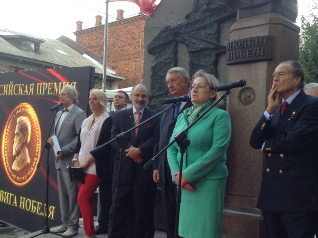 Участники торжественной церемонии возле памятника Людвигу Нобеля