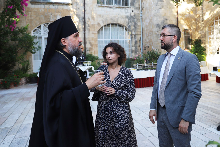 В своей приветственной речи начальник Русской духовной миссии в Иерусалиме архимандрит Вассиан (Змеев) отметил, что присутствующие на приёме представляют разные народы и страны, традиции и культуры, разные исторические пути и взгляды на будущее. Но всех объединяет желание мира, согласия, благоденствия и спасения для всех людей. Это те ценности, которые воплощает в себе праздник Святой Троицы.
