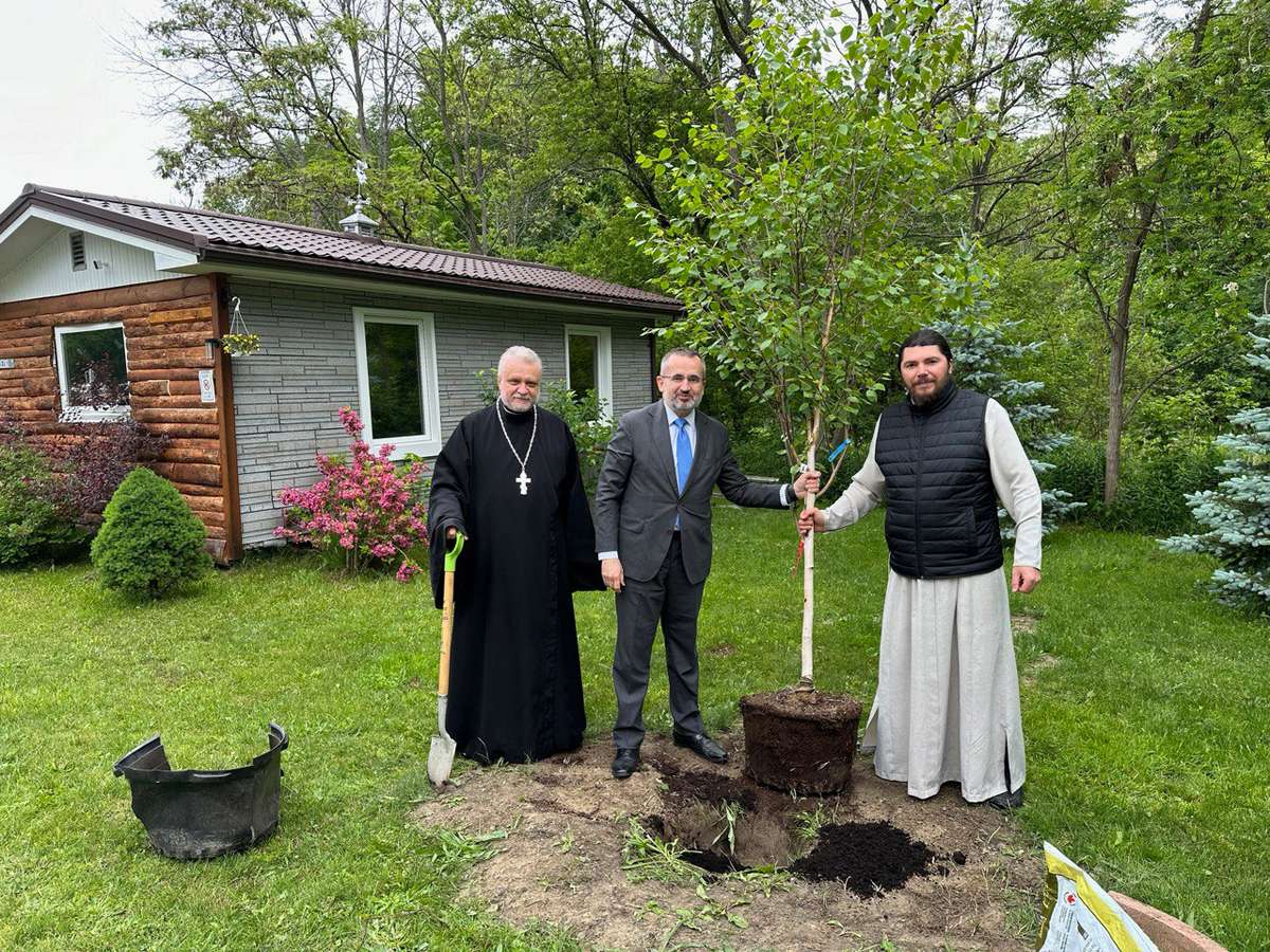 В торжествах на приходе Смоленской иконы Божией Матери принял участие Чрезвычайный Посол РФ в Канаде Олег Степанов. В память о знаковом событии он вместе с духовенством прихода посадил березку на прихрамовой территории.