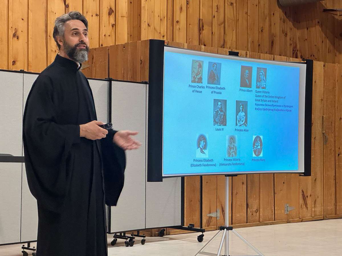 Во второй половине дня торжества продолжились в концертном зале недалеко от храма. В частности, клирик храма диакон Георгий Большан подготовил доклад-презентацию о жизни святой княгини Елизаветы Федоровны, втором Председателе Императорского Православного Палестинского Общества.