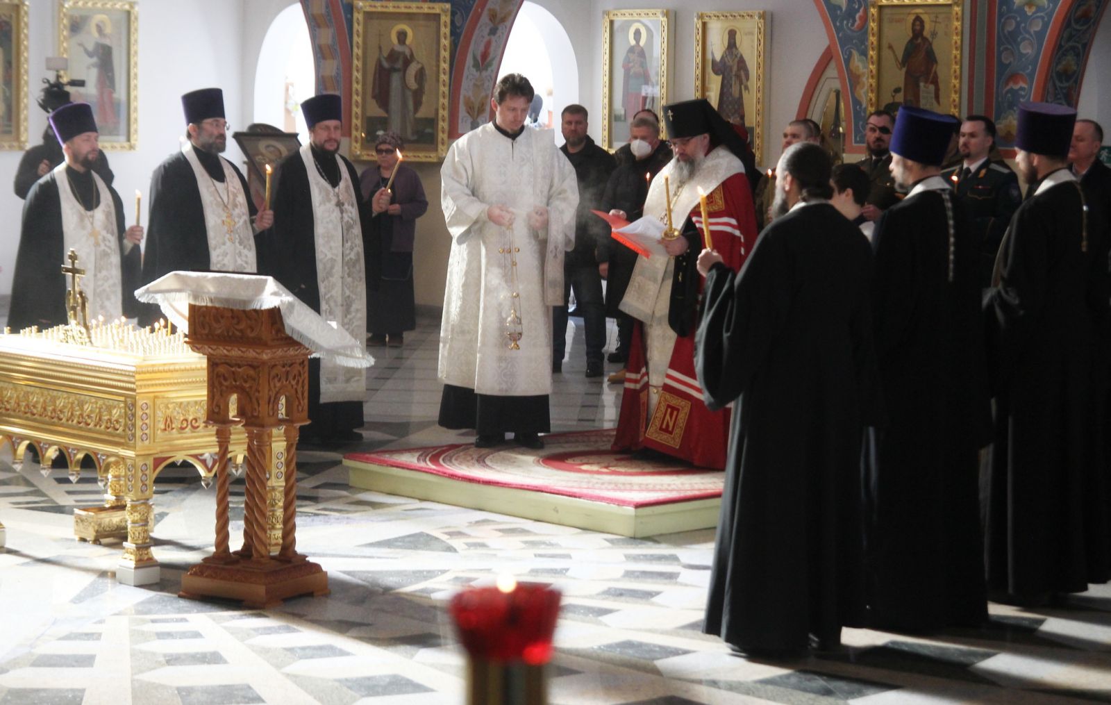 Владыке сослужили клирики Центрального благочиния епархии. В этот трагический день почтить память первого Председателя Общества Великого князя Сергия Александровича на службу пришли члены Сахалинского отделения ИППО: заместители руководителя регионального Общества отделения Майя Кириллова, Владимир Иконников, секретарь отделения протоиерей Виктор Горбач, действительные члены ИППО Александр Гимро, Александр Агибалов, Александр Анистратов, Владислав Епифанов. Также участниками мероприятия стали представители молодёжных и казачьих организаций, прихожане.